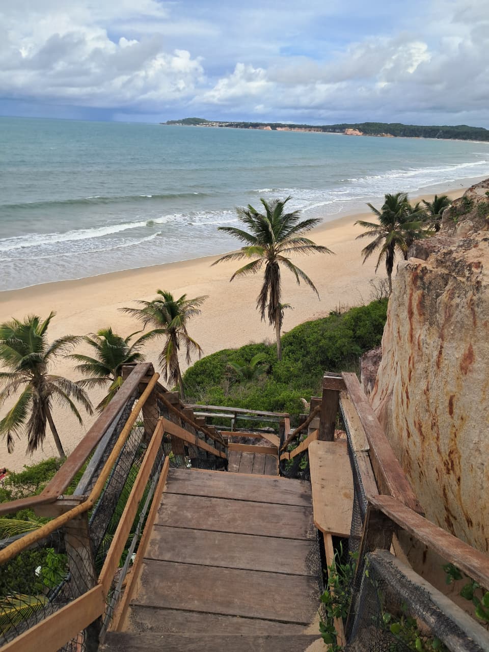 Basta atravessar a rua e descer as escadas para chegar à Praia de Cacimbinhas — uma das mais bonitas e tranquilas da região.
